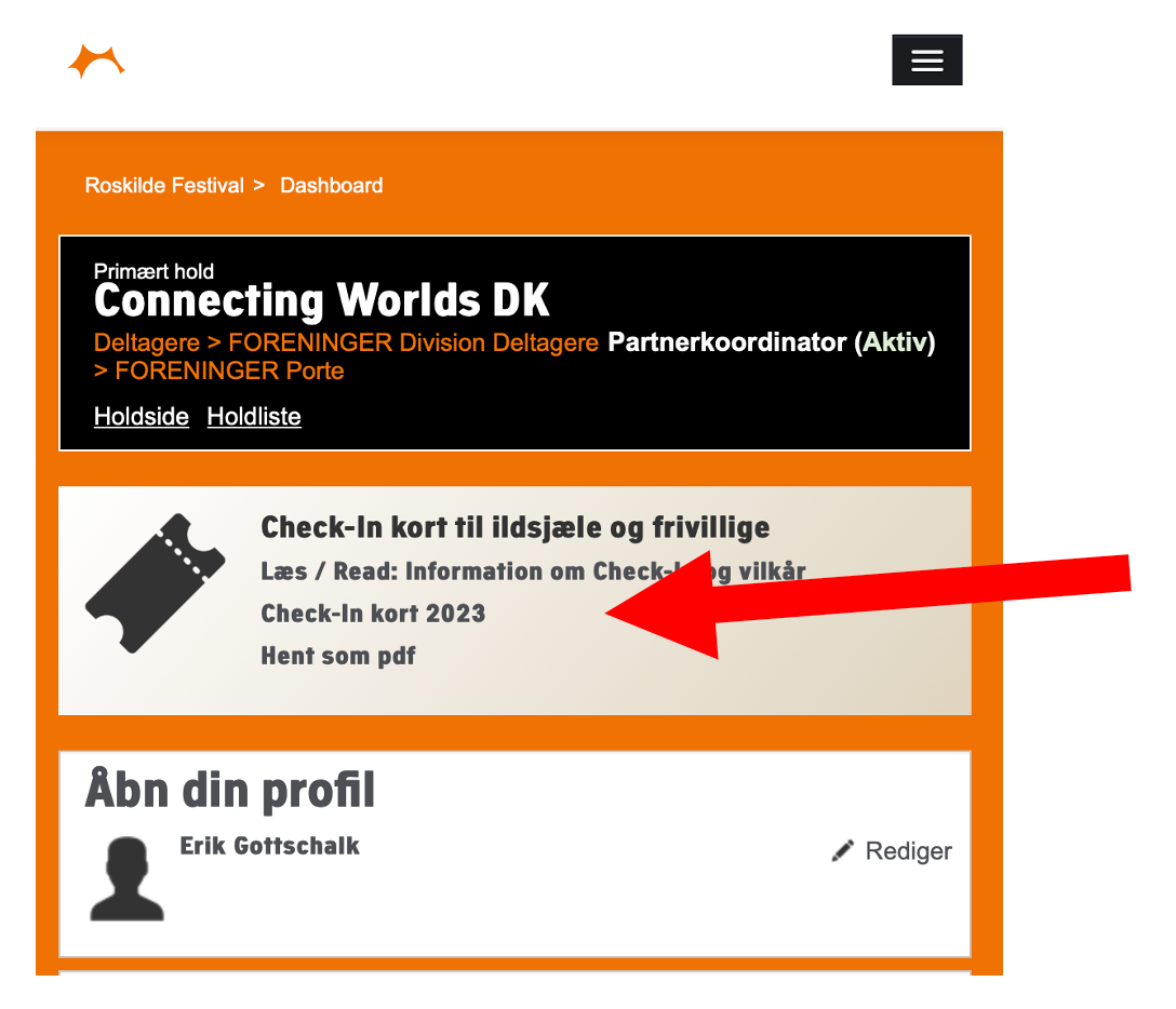 Click on “Check-in kort 2026” (You can show it on your phone or print it)